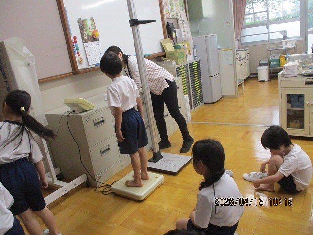 身体計測をしました。計測前の「お願いします。」と終わったときの「ありがとうございました。」もしっかり言えた1年生、園の時よりどれぐらい大きくなったでしょうか?これからもたくさん体を動かして食べて寝て、上部な体をつくっていきましょう。