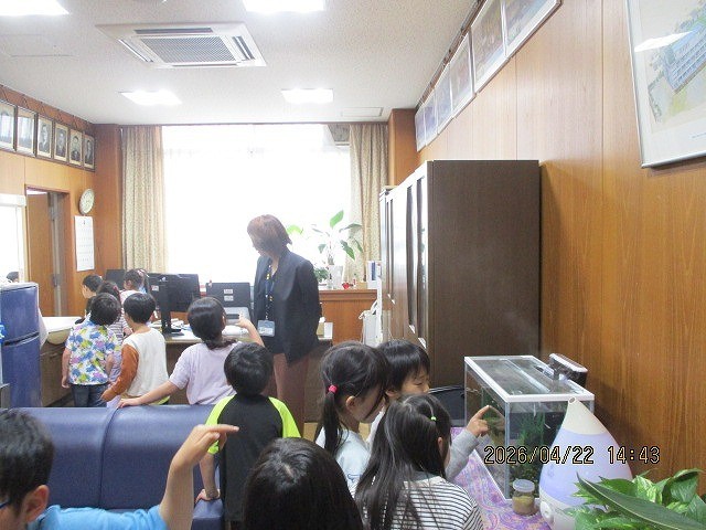 行ってみたかった校長室に行くことができました!「ここにもメダカがいる!」「(歴代校長の)この写真は誰?」と校長先生にいろいろ質問もしていました。