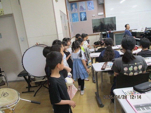 音楽室で6年生が勉強していると聞き、突撃で見学させてもらうこともできました。お兄さん、お姉さんが頑張る姿はとても心に残ったようです。