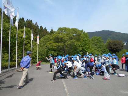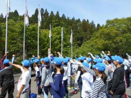 担任の先生とボランティアさんの出発の掛け声に合わせて5年生の大きな声がこだましました。