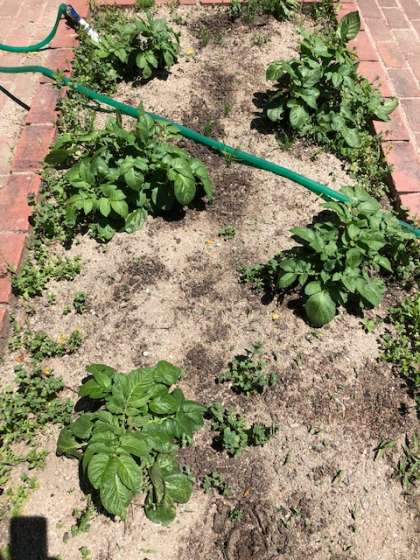 日差しが強くなる中,3月に植えたジャガイモは,順調に育っています!