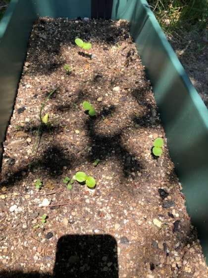 また,4月に植えたホウセンカの種から子葉がでてきました。