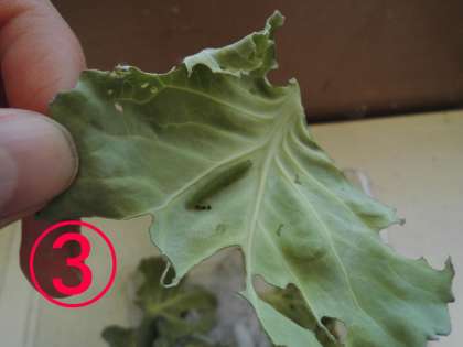 そして,前にしょうかいしたモンシロチョウのたまごから「よう虫」が出てきました。キャベツのはっぱを,むしゃむしゃと食べて元気にそだっていますよ。これから,どのように育っていくか楽しみですね。