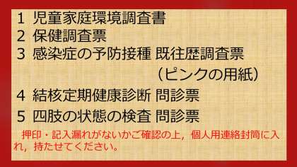 持ち物は,健康観察票・マスク・筆記具・課題プリントです。