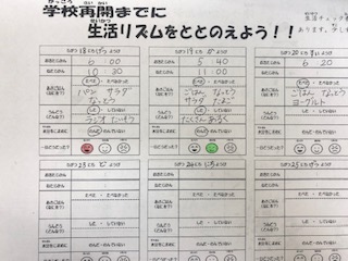 うらにある「生活チェック表」が,18日(月)から始まっています。