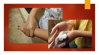 学校では,アルボース石鹸や固形石鹸での手洗い(登校直後,給食前,体育の授業後,外遊びの後,トイレの後等)の指導を行い,徹底を図っています。もちろん,担任による手指用の消毒アルコールの活用も行っています。