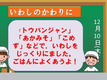 今日の給食は「麦ごはん・牛乳・いわしの変わり煮・関東煮」でした。