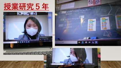 教員研修で,5年生の目標を再確認し,限られた時間ではありましたが,指導主事にもリモートで参加していただきました。教室で模擬授業を行い,担任以外も,タブレット端末を使い,プログラミングソフトのスクラッチを活用し,作図プログラムをつくる操作を行いました。