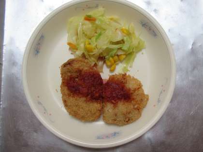 今日の給食は,行事献立の「ごはん・ヒレカツ・野菜のソテー・みそしる」でした。
