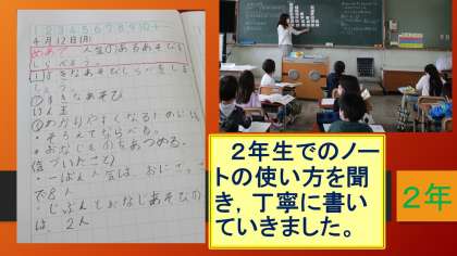 今日のノートを見せてもらいましたが,丁寧な文字で書けている人がとても多く,感心しました。“学習のあしあと”としてのノートも大事です。ご家庭でも,お子たちのノートを見て話題にしてみてくださいね。