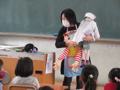 初めての給食を子どもたちがスムーズにできるように,午前中に,各クラスに出向き給食指導をしました。どのクラスの子どももしっかり聞け,うれしく思いました。