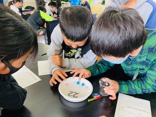 簡単そうに見えて難しい!!上から見たり下から見たり,チームで問題を解き合いました。理科の実験でも,様々な角度から物事を見ることが大切だよと最後に教えていただきました。
