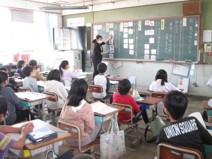 クイズ形式で4つに分類した後,漢字がどのように形成され,継承されてきたのかなどについて学びました。