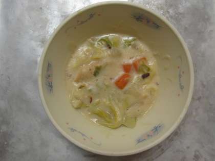 「キャベツのクリームに」は,春に美味しいキャベツを手作りのホワイトルーで煮込みました。