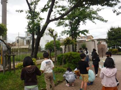 桜の木の枝をよく見てしっかり観察をしました。草むらや,花壇で虫などの生き物も探しました。草むらに目を凝らしながら真剣に生き物を探していました。モンシロチョウや,テントウムシ,ダンゴムシなどを見つけることができました。次は,夏に観察に行きます。生き物たちはどんな風に変わっているか楽しみですね。
