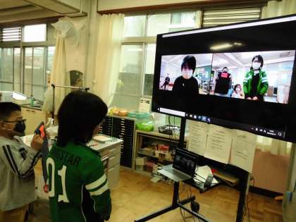 「めざせからはしマスター」の学習の中で,他の学級の先生たちにZoomを活用してインタビューを行いました。インタビューの様子を動画で記録を残して,次の学習で使います。