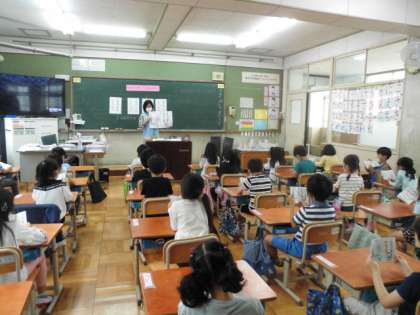 栄養教諭の中野先生が,1年生の教室に来てくれました。