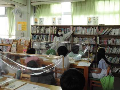 国語科「図書館の達人になろう」の学習で,図書館司書の藤井先生よりお話を聞きました。