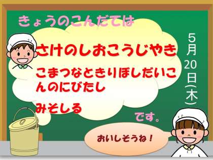 今日の「味噌汁」は,京都市の京北地域で作られた「京北味噌」を使った地産地消の献立です。こどもたちも「おいしいよ!」とおかわりしていました。