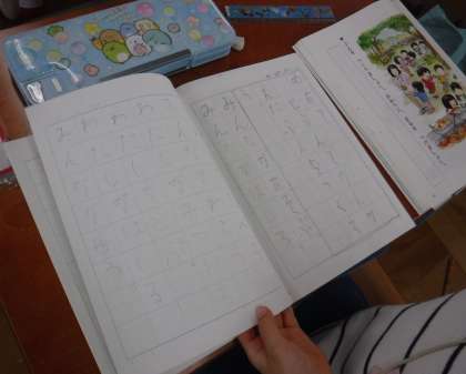 4月から始めたひらがなの学習もあと数文字となってきました。