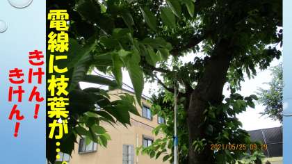 校内を見渡すと,桜の木がぐんと伸び青々と繁っています。よく見ると,電線にかかりそうなくらいの勢いで伸びています。
