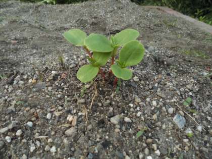 畑に蒔いていたヒマワリとホウセンカの種から芽が出ました。