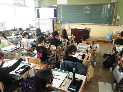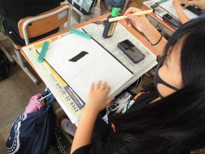 今回からは,いよいよ文字を書いていきます。「横画」の筆遣いに気を付けながら漢数字の「二」を書きました。