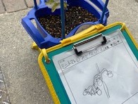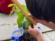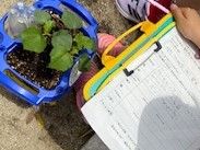 国語科で学習している「かんさつ名人なろう」で学習したことをもとに見たり,さわったり,においをかいだりして くわしく観察をしました。