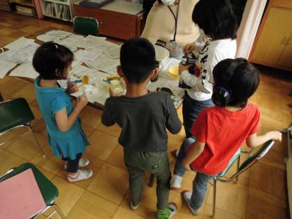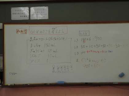 色水を抹茶やミルクに見立てて,レシピに沿って抹茶ラテを作る学習をしました。みんな楽しみながら,「かさを量る学習」や「何人前かの量を計算する学習」をしました。