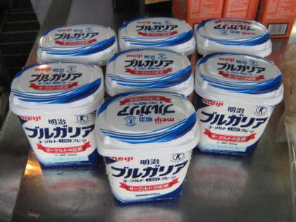 カレーには,まろやかさとコクを出すために,ヨーグルトを入れています。今日は箱入りのヨーグルトを7つ使いました。