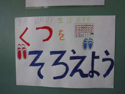 計画委員会で話合い,9・10月の生活目標は,「くつをそろえよう!」に決まりました。靴箱を見ていると,ほとんどの靴がそろっていますが,まだまだなところもあります,頑張っていきましょう。さすが6年生は,みんな靴がそろっていました。最高学年として学校をよりよくするために頑張ってくれています。