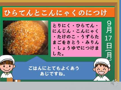 今日の給食は,「ごはん・牛乳・平天とこんにゃくの煮つけ・もやしの煮びたし・おはぎ」でした。