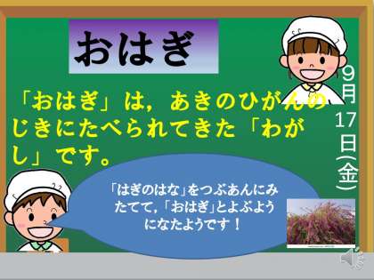 9月の彼岸の時期に咲く「萩の花」を粒あんにみたてて,「おはぎ」と呼ぶようになったといわれています。