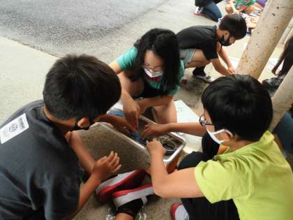 生活の身近なところにある水や,川に注目して学習が進んでいます。流水実験では,キットを使って,流れる水には「運ぱん」・「たい積」・「しん食」の働きがあることを見つけました。