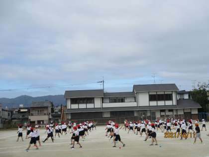 感染症対策もあり,学年で運動場に出て,そろって練習する時間は限られていますが,限られた回数の中で,みんなよく頑張っています。演技だけでなく,エイサーパーランクーの音もそろってきました。