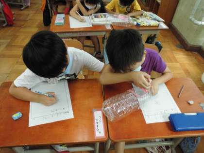1年生の生活科「いきものとなかよし」の学習では,西寺公園で捕まえた虫の観察をしました。じっくりと見て,細かな部分まで観察カードに記録することができました。