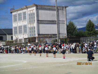 4年生の80m走・2年生の50m走・6年生の100m走と一人一人の子どもたちのがんばって走る姿がたくさん見られる競技が続きました。どの学年も素晴らしい姿でしたが,6年生の躍動感のある走る姿を見ていると,この6年間の成長に驚かされます。