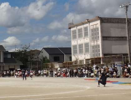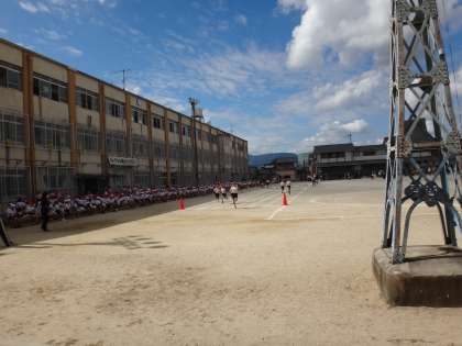 4年生の「バラエティ走」です。マットで前転をしてスタート。どうすれば少しでもはやくゴールできるか,一人一人の試行錯誤がたくさん見られました。