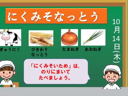 「納豆」の苦手な児童も,牛肉の味にひかれ「肉みそ納豆」を食べられました。