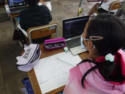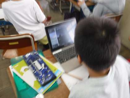 4年生の理科では,月の位置がどのように変わっていくか学習しています。今回は,半月や満月が,どのように位置が変わっていくか予想を立て,タブレットを使い,観察をしました。