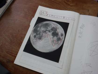子どもたちは,人魚や,キリンなど様々なものに見立てて,なるほどと言いながら交流をしていました。人それぞれいろいろな見え方があってとても面白かったです。明日は満月です,ぜひ実際に観察してほしいと思います。