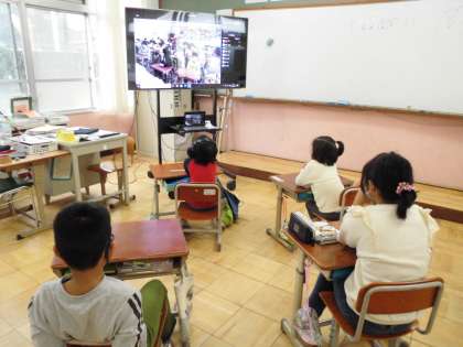 今日は,5年2組の人たちとリモートシステムを使い,「なかよしタイム」をしました。5年2組の人たちが懸命に考えてくれたジェスチャーゲームを目一杯楽しみました。