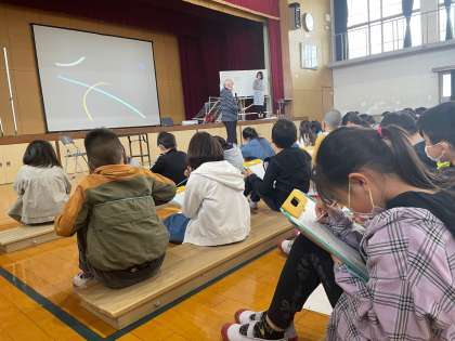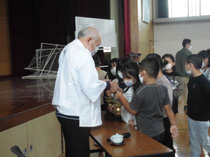 今回は,唐橋地区自治会長さんがゲストティーチャーに来てくださいました。唐橋のまちにとって西寺公園がどんなところなのか,会長さんの子どもの頃の公園の様子や西寺公園と松尾祭りの様子などを交えながらお話して頂きました。