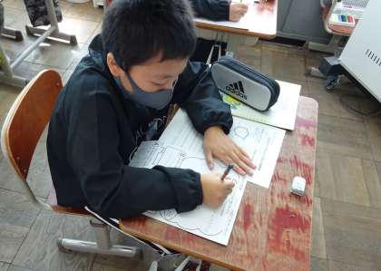 総合的な学習の時間に,環境に配慮した生活を送ることができたかを振り返った「エコライフ診断書」を渡しました。「食品ロスを減らすために,給食を残さずに食べることを意識することができました。」とか,「水を使わないときは,こまめに蛇口の水を止めるようにしました。」と,自分が頑張ったことをふり返るとともに,あまりできなかったなと思う点についても話し合いました。最後に,自分が頑張ったエコライフの目標を長く続けるために,そして取り組むことが難しかった目標を達成するためには,どのような工夫をしていったらいいかを考えました。人間も動植物も,安心して暮らせる地球環境にするために,今自分たちができることを,コツコツと続けていこうという意欲が見られました。
