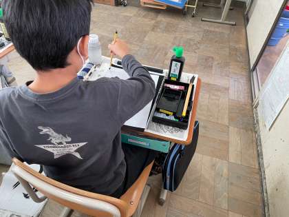 今回は,「おれ」「はね」の筆遣いに気を付けて書くことをめあてに,「力」という字を書きました。しずまりかえった中で,筆を動かす音が聞こえてきました。
