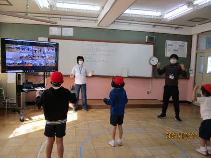 そして,次に,みんなで,パプリカの曲に合わせて踊りました。祥豊校の1年生の児童の皆さんも踊りを覚えて踊ってくれている様子が映し出され,とてもにぎやかで嬉しく思いました。