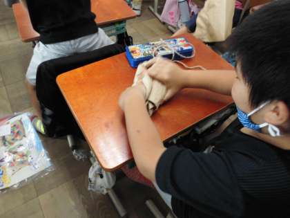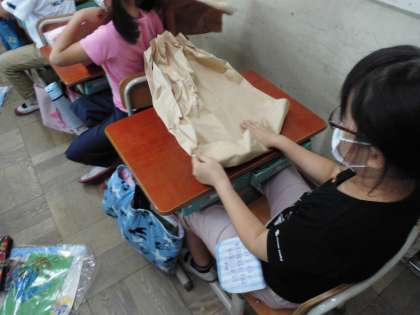 紙をくしゃくしゃにしたりぎゅっとしたりしたりして紙の感触を楽しみながら,想像を広げました。子どもたちには一体何に見えてきたでしょう。