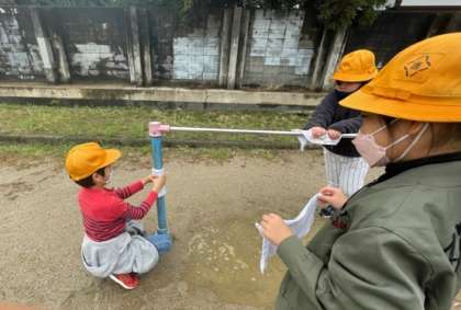 「遊具ってこんなに汚れているのか!」「めちゃくちゃピカピカに磨けた!気持ちよく座ってもらうぞ!」と,終始やる気いっぱいでした。