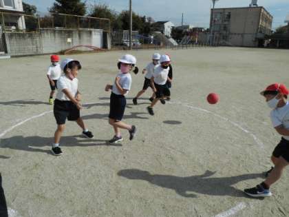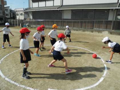 体育で「ころがしドッジボール」をしました。どうやったら,ボールを早く投げれるか。どうしたら,点数をたくさん取れるのか。考えながら,ドッジボールすることができました。チームで作戦も考えたりしました。