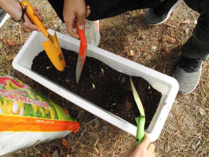 栽培委員会では,11月1日の人権朝会でいただいた人権の花「スイセン」の球根を植えました。